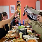 Codziennie rano goście hostelu mogą delektować się wegetariańskim śniadaniem. Wieczory można spędzić w tarasowym barze. Restauracja Melograno Restaurant z Europese specjałami w odległości 8-minutowego spaceru jest od obiektu o 0,6 km. Nocleg oferuje wspólną kuchnię do samodzielnego przygotowywania posiłków. Przystanek autobusowy Optika leży w małej odległości stąd. W okolicy panują doskonałe warunki do uprawiania rozmaitych form aktywnego wypoczynku, w tym tenisa stołowego i gry w rzutki.